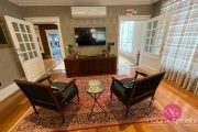 Sala e sacada integrada com churrasqueira à carvão com exaustor
