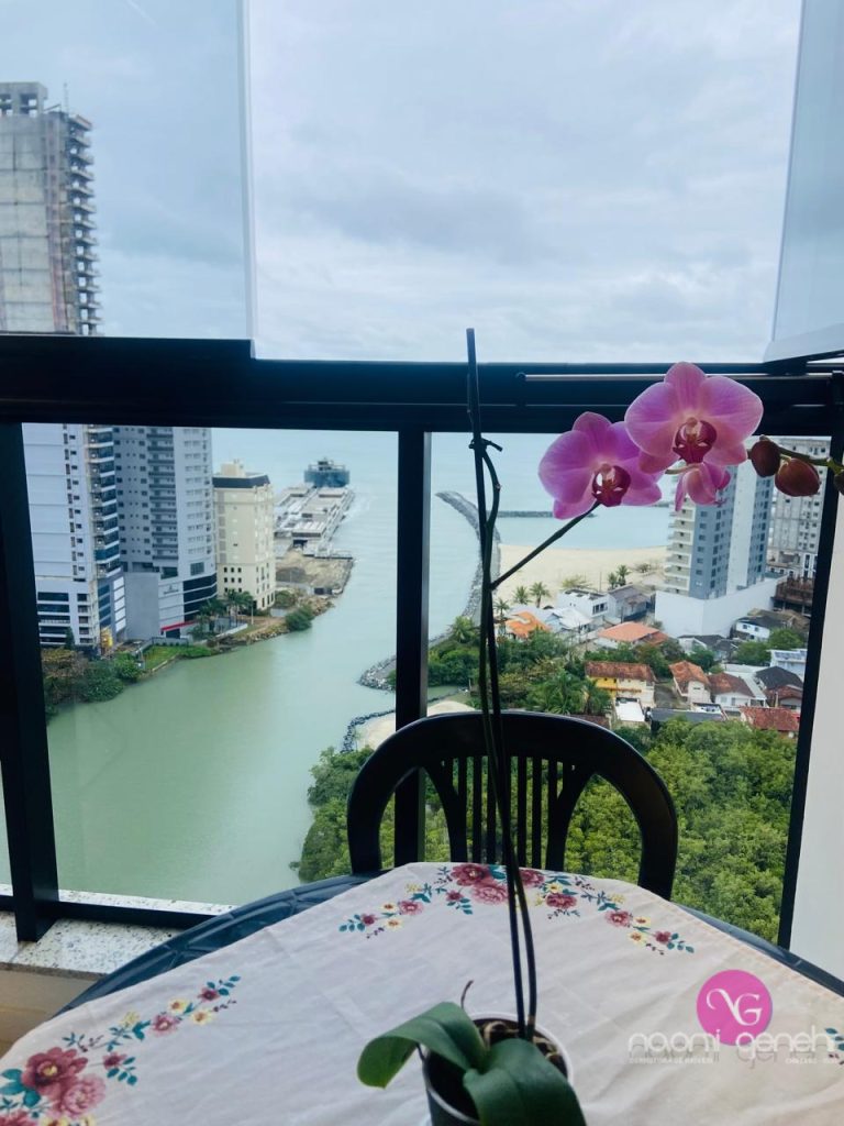 Sacada fechada com churrasqueira, vista para o mar e Pier